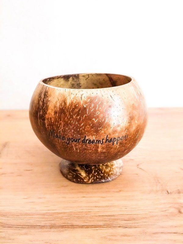 Келих або кухоль з кокосу — це не лише посуд для щоденного використання, але й екологічний вибір, який підкреслює вашу свідомість та уважність до природи. Ці предмети чудово підійдуть для тих, хто цінує натуральність і унікальність у кожній деталі. Вони зручні, довговічні та красиві, допомагаючи вам створювати атмосферу тепла, природності та стилю в домі.