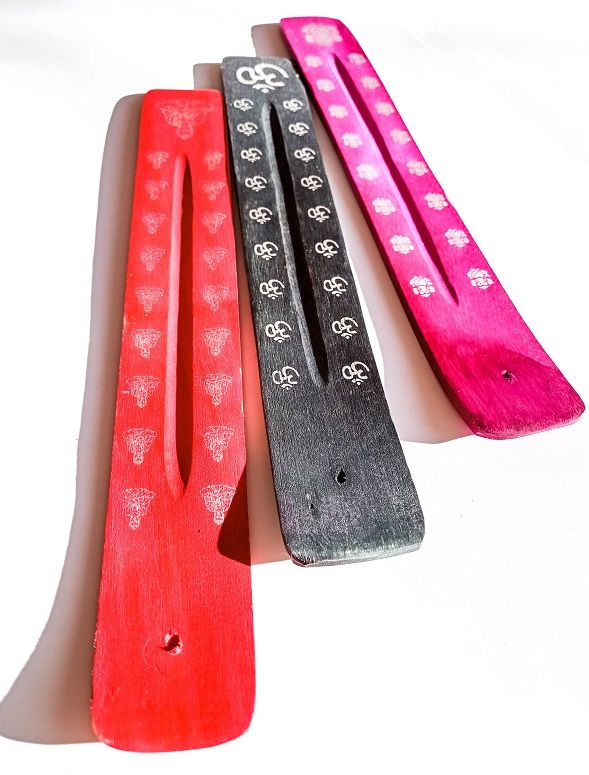 Підставка під пахощі дерев’яна. В асортименті кольори – червоний, рожевий та чорний.