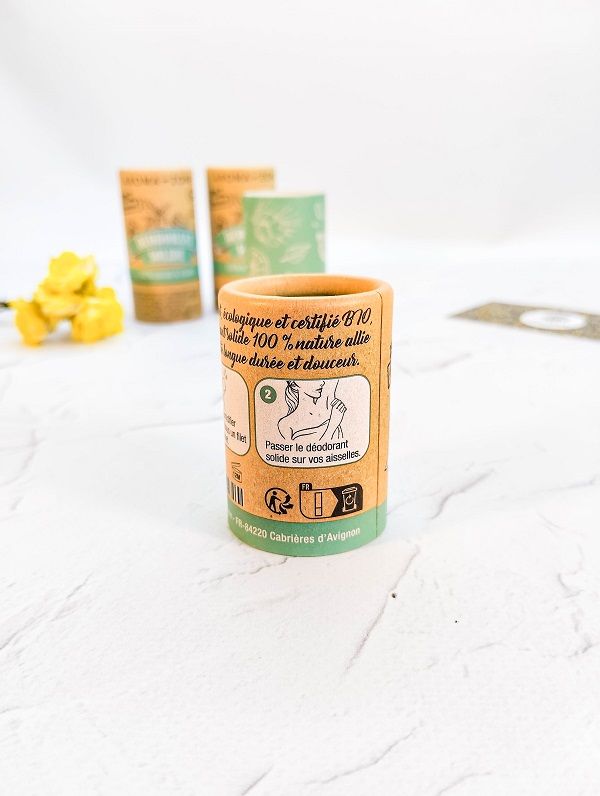 • Твердий дезодорант 100% натурального походження, органічний сертифікований.